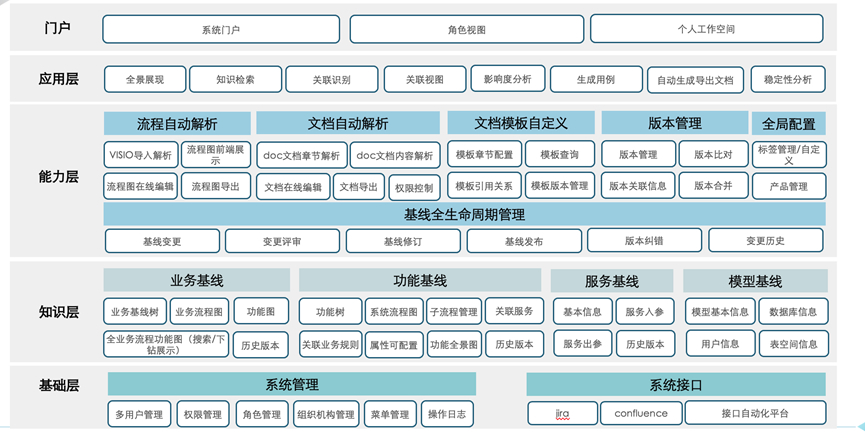 基于流程基线、、功能基线、、服务基线、、模型基线等,,,梳理信息之间的关系,,分企业级、、、系统级、、、、功能级结构化展示