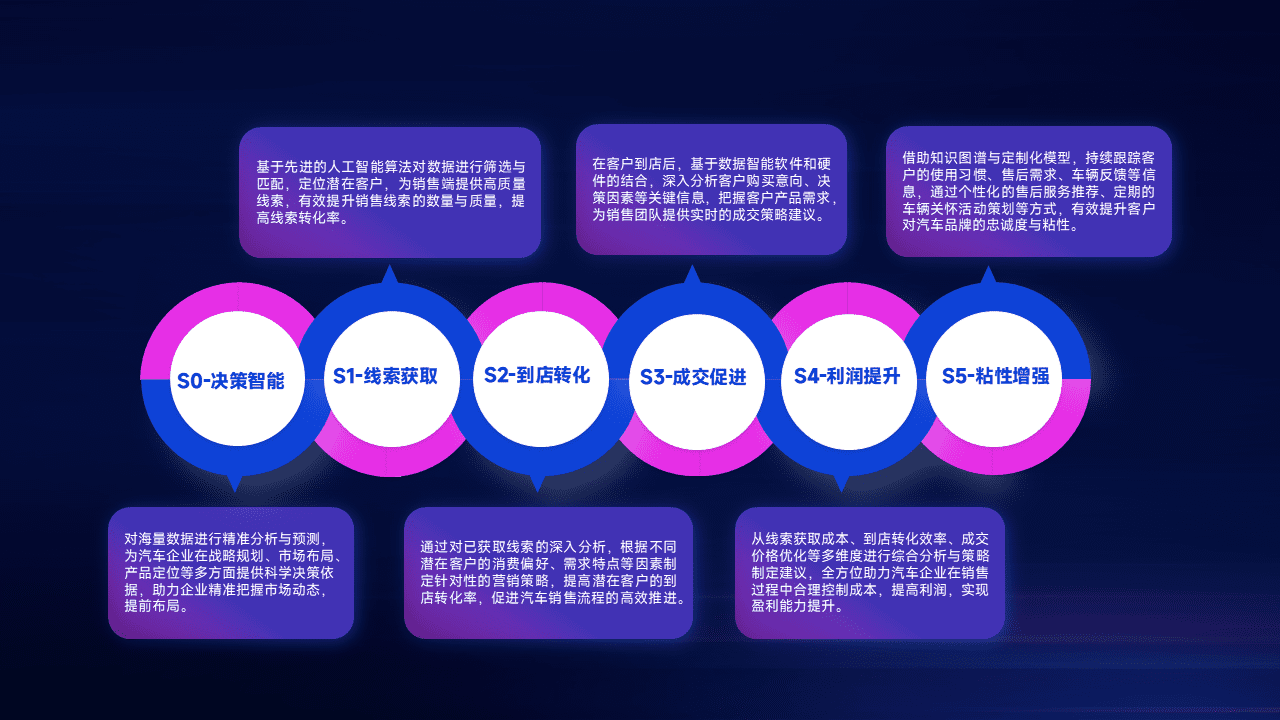 通过拓宽潜在客户来源、、优化线索分配并提高到店转化率,,以增强销售效率。。。同时,,,利用线索数据不断优化分析模型,,,有效提升转化率,,扩大营销影响力。。